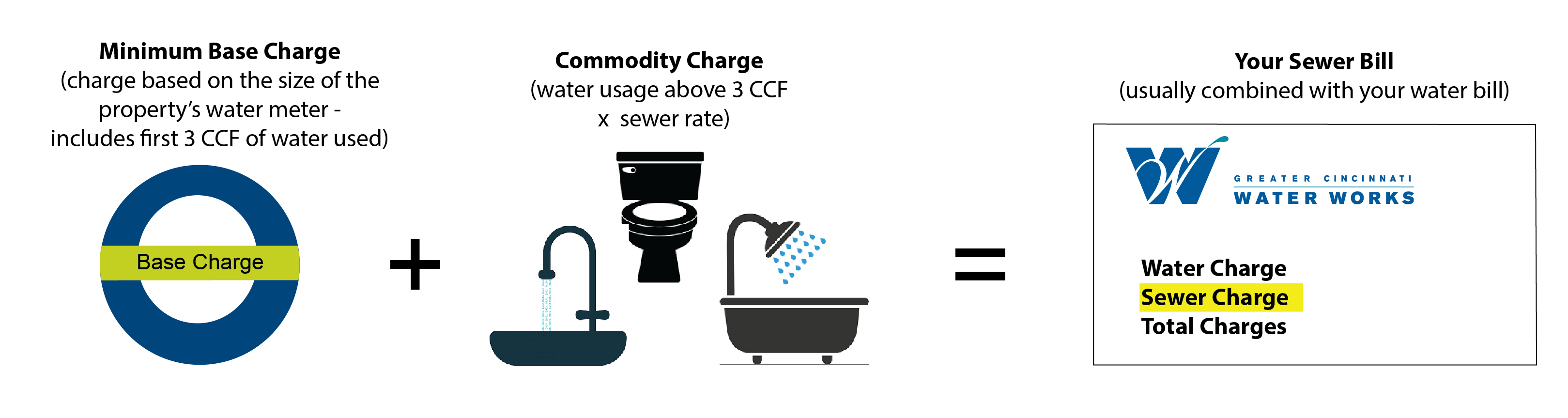 Sewer bills are generally based on water meter size and the amount of water used by a property. Your sewer bill is typically included as a separate line item on the water bill sent by your water provider. Residential and commercial/industrial customers are often charged differently.